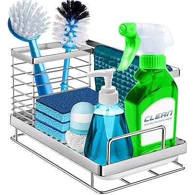 Designed to maximize your counterpace and keep your sponges and cleaning brushes close to where needed. Or if you want to buy kitchen sink storage of a different kind, you can remove filters from the breadcrumbs at the top of the page. Kitchen sponge holder sink storage basket stainless steel sink caddy organizer sink hanging soap liquid rack basket for sponge, soap, brush. Designed to keep your sink area clear and mess free, this sink caddy is the perfect addition to your kitchen. The steel structure of the sink caddy is what makes it so durable and resistant to wear.